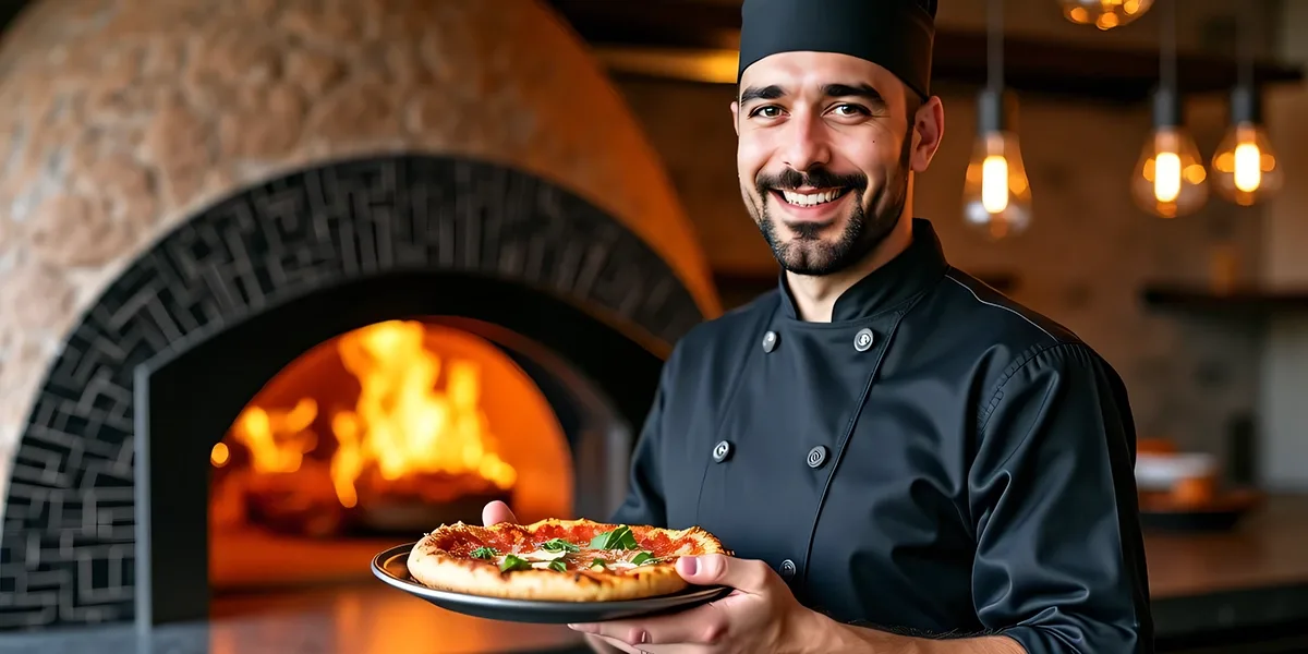 Cada pizza es elaborada a mano y cocida en horno de fuego vivo, logrando una textura crujiente y un sabor auténtico.